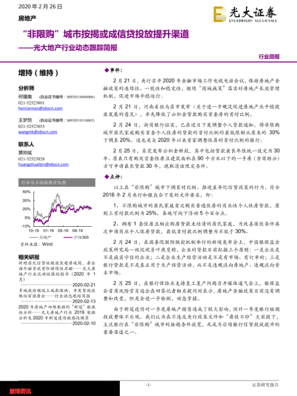【光大证券】【20200226】光大地产行业动态跟踪简报:“非限购”城市按揭或成信贷投放提升渠道-3页 行业研究