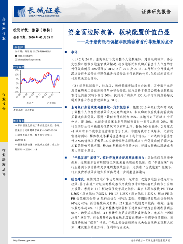 【长城证券】【20200228】关于浙商银行调整非限购城市首付等政策的点评-5页 行业研究