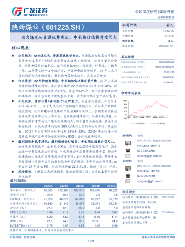 【广发证券】【20230101】陕西煤业(601225.SH)动力煤龙头资源优势突出,中长期估值提升空间大-23页 行业研究