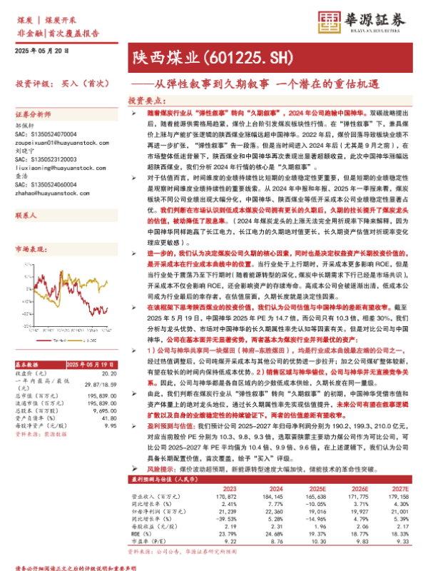 【华源证券】【20250520】陕西煤业——从弹性叙事到久期叙事一个潜在的重估机遇-13页 证券期货研究报告