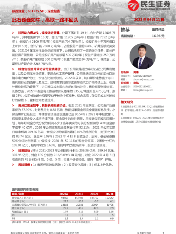 【民生证券】【20220411】20220411-民生证券-陕西煤业-601225.SH-深度报告:此石巍巍如牛,高歌一路不回头-19页 行业研究