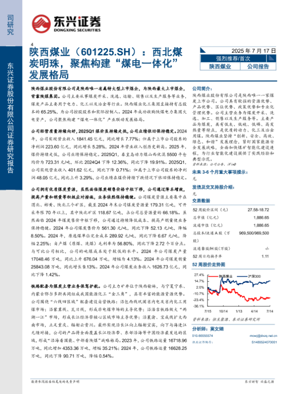 【东兴证券】【20250717】陕西煤业:西北煤炭明珠,聚焦构建“煤电一体化”发展格局-18页 公司研究