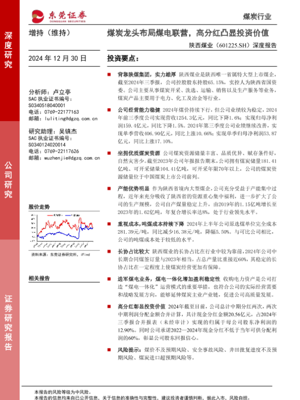 【东莞证券】【20241230】20241230-东莞证券-陕西煤业-601225.SH-深度报告:煤炭龙头布局煤电联营,高分红凸显投资价值-24页 行业研究