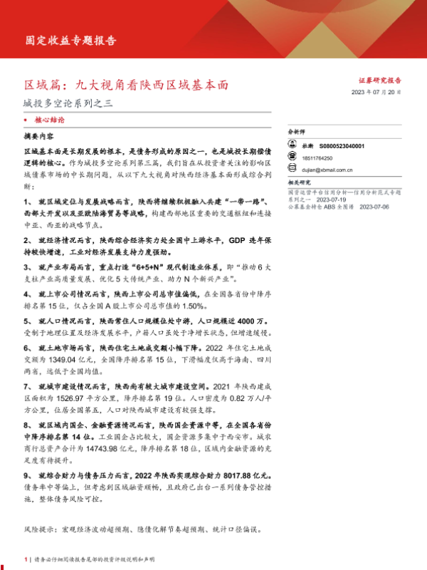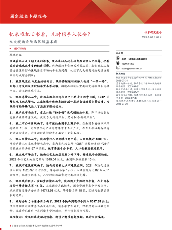 【西部证券】【20230801】固定收益专题报告:九大视角看陕西区域基本面,忆来唯把旧书看,几时携手入长安?-31页 行业研究