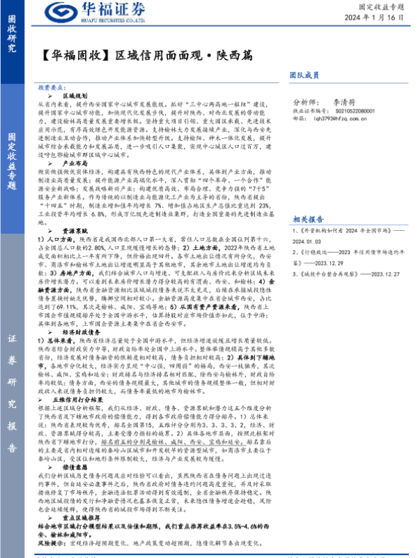 【华福证券】【20240116】【华福固收】区域信用面面观·陕西篇-27页 行业研究