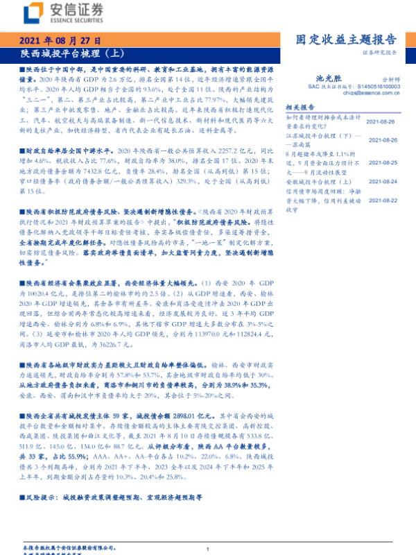【安信证券】【20210827】固定收益主题报告:陕西城投平台梳理(上)-15页 行业研究