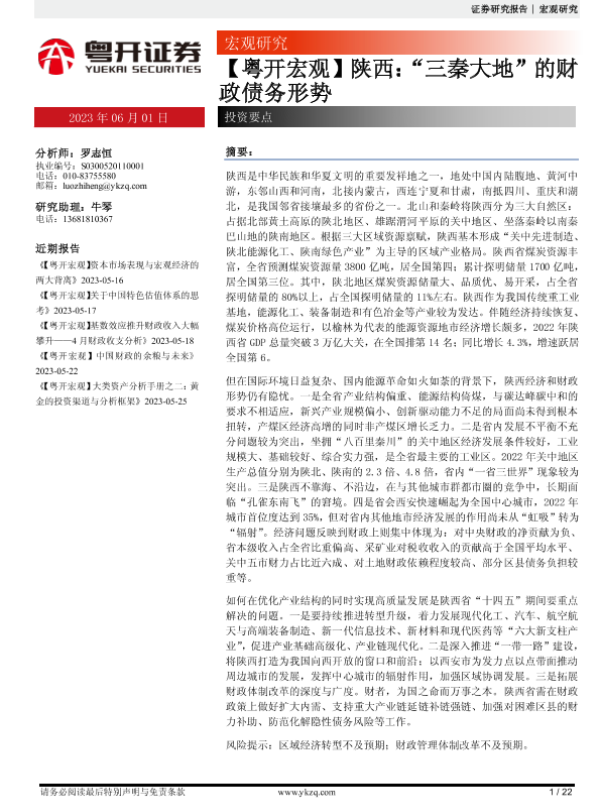 【粤开证券】【20230601】【粤开宏观】陕西:“三秦大地”的财政债务形势-22页 行业研究