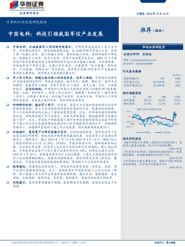 【华创证券】【20241024】计算机行业深度研究报告-中国电科:科技引领我国军信产业发展-24页 行业研究