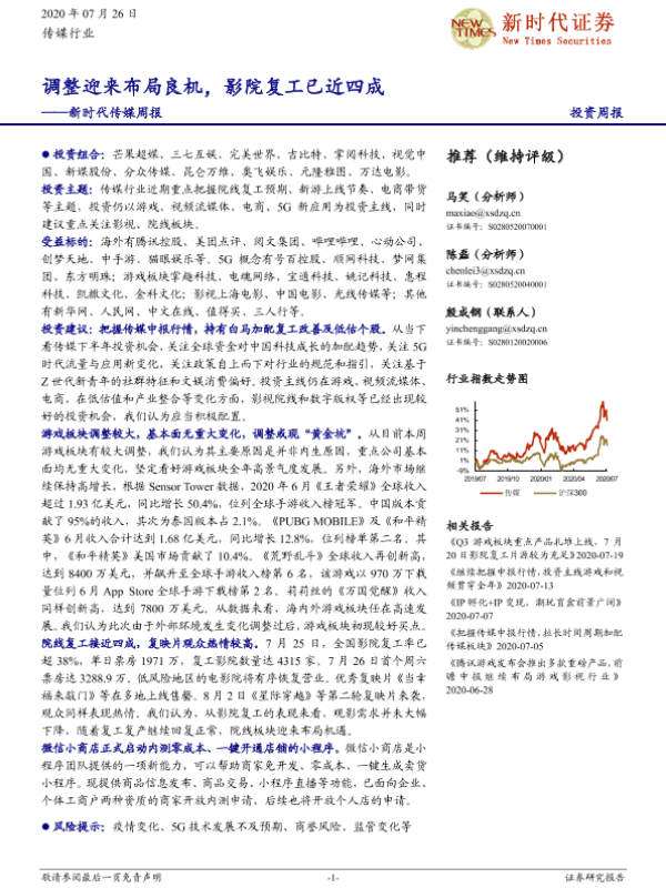 【新时代证券】【20200726】新时代传媒周报:调整迎来布局良机,影院复工已近四成-36页 行业研究