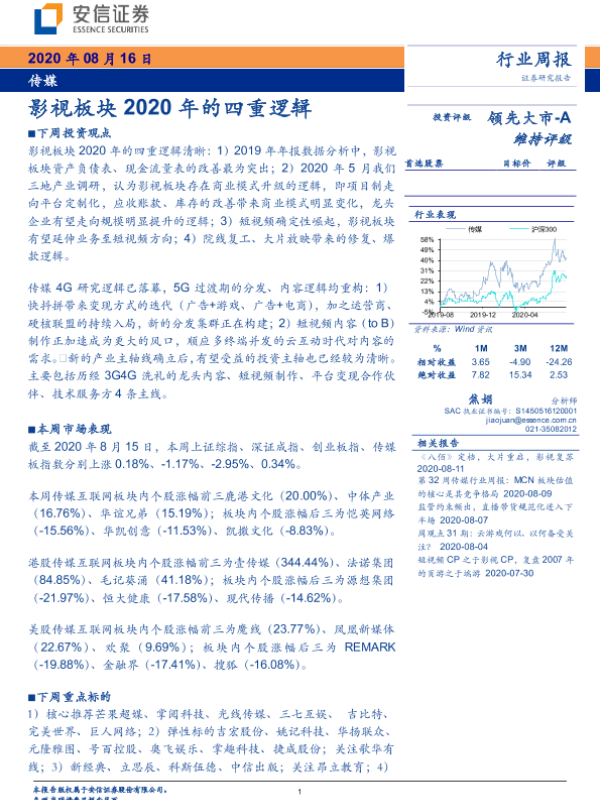 【安信证券】【20200816】传媒行业周报:影视板块2020年的四重逻辑-14页 行业研究
