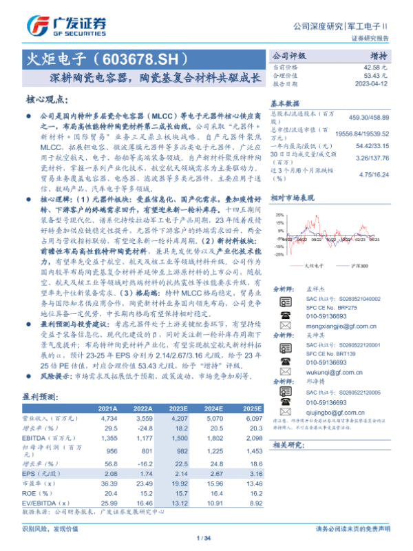 【广发证券】【20230412】深耕陶瓷电容器,陶瓷基复合材料共驱成长-34页 行业研究