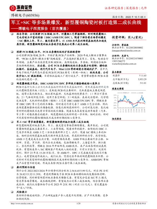 【浙商证券】【20221005】博敏电子深度报告(首次覆盖):军工+SiC等多场景爆发,新型覆铜陶瓷衬板打造第二成长曲线-20页 行业研究