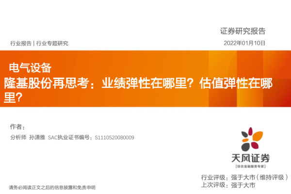 【天风证券】【20220110】20220110-天风证券-电气设备行业专题研究:隆基股份再思考:业绩弹性在哪里?估值弹性在哪里?-22页 行业研究