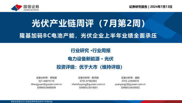 【国信证券】【20240713】光伏产业链周评(7月第2周):隆基加码BC电池产能,光伏企业上半年业绩全面承压-20页 行业研究