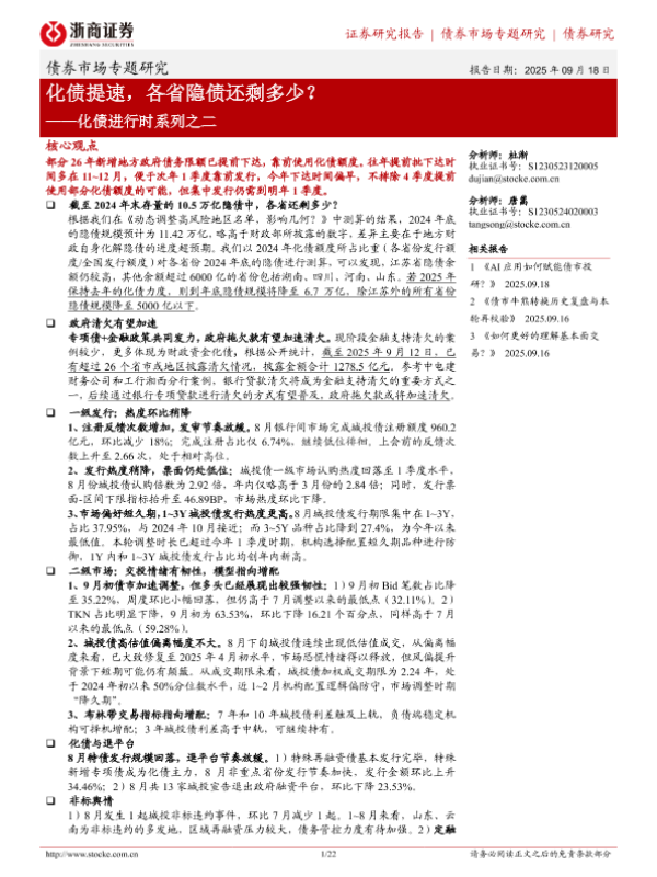【浙商证券】【202509】化债提速,各省隐债还剩多少?——化债进行时系列之二-22页 证券期货研究报告
