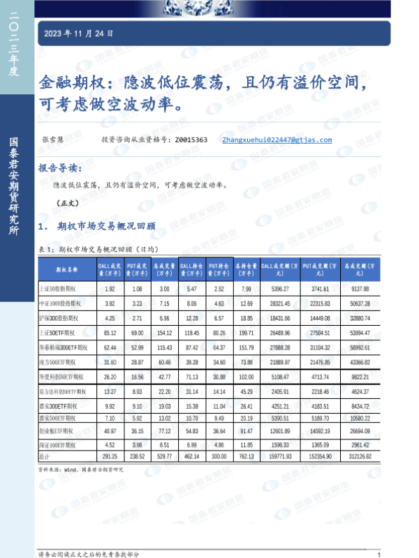【国泰君安期货】【20231124】金融期权:隐波低位震荡,且仍有溢价空间,可考虑做空波动率。-16页 行业研究