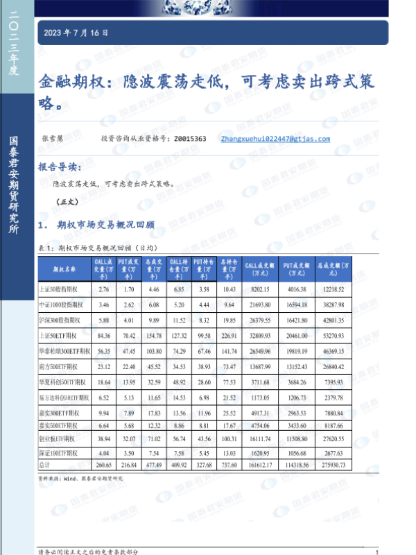 【国泰君安期货】【20230716】金融期权:隐波震荡走低,可考虑卖出跨式策略-17页 行业研究