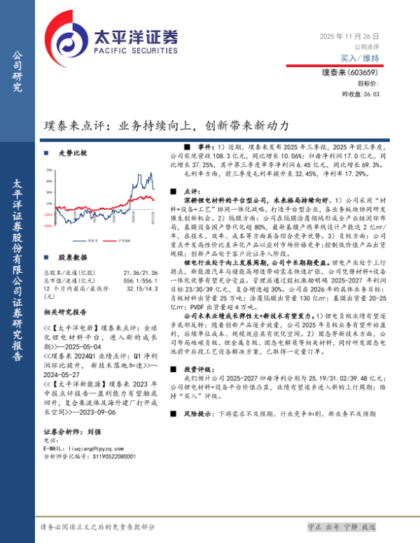 【太平洋证券】【202511】璞泰来点评:业务持续向上,创新带来新动力-5页 证券期货研究报告