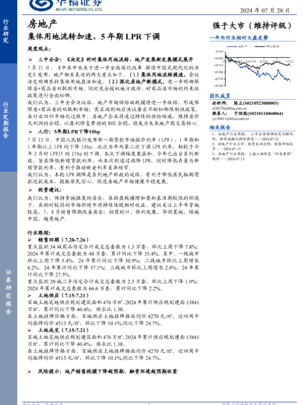 【华福证券】【20240728】房地产行业定期报告:集体用地流转加速,5年期LPR下调-14页 行业研究