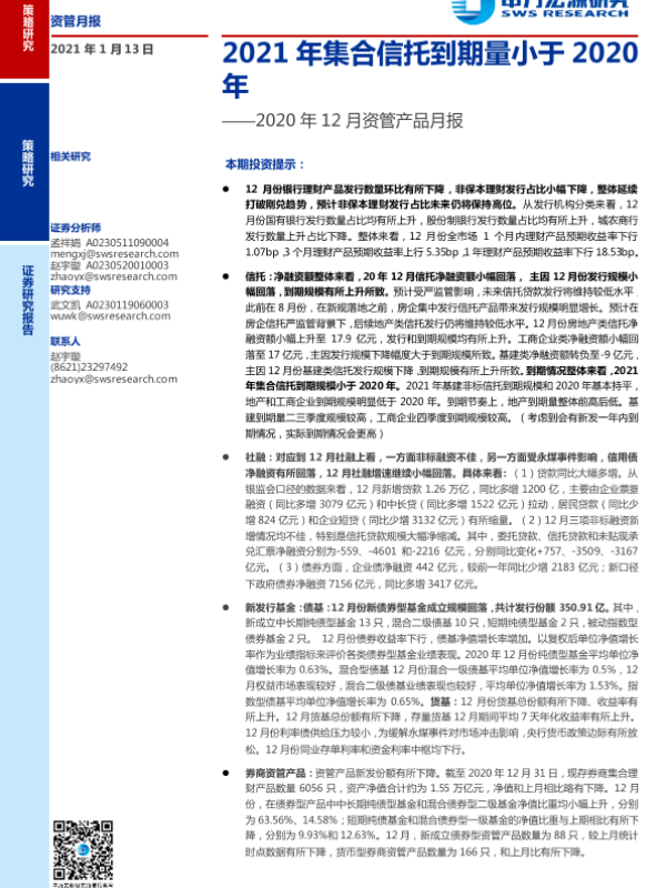 【申万宏源】【20210113】2020年12月资管产品月报:2021年集合信托到期量小于2020年-12页 行业研究