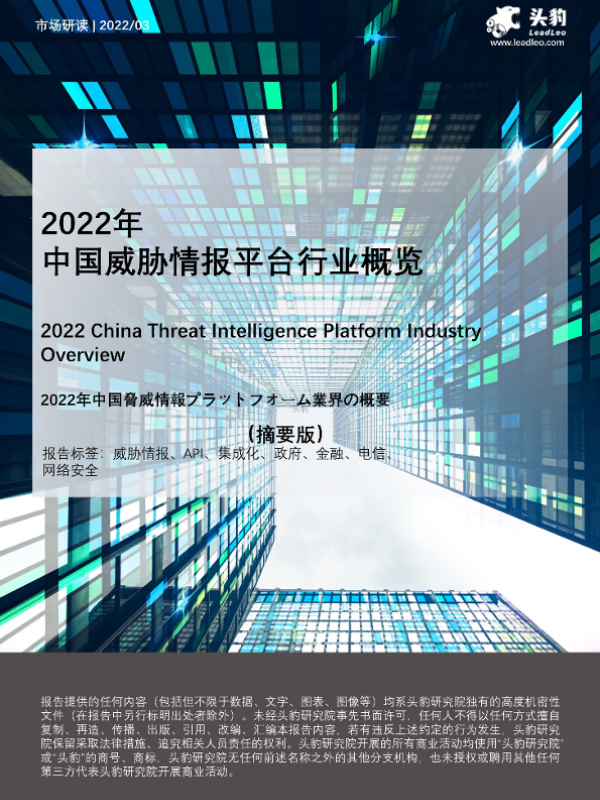 【头豹研究院】【20220429】2022年中国威胁情报平台行业概览(摘要版)-17页 行业研究