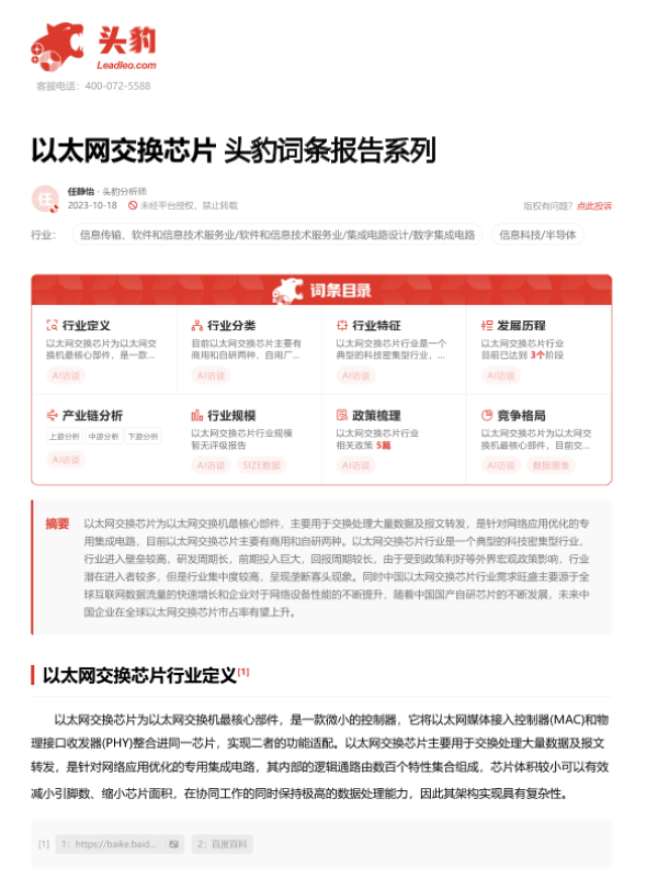 【头豹研究院】【20231018】以太网交换芯片 头豹词条报告系列-16页 行业研究