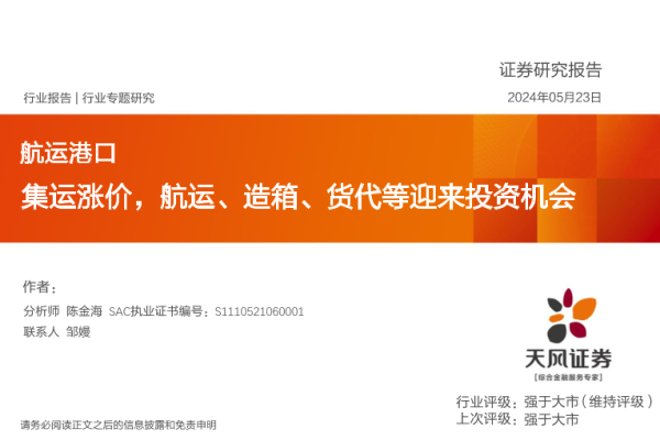 【天风证券】【20240523】航运港口行业专题研究:集运涨价,航运、造箱、货代等迎来投资机会-21页 行业研究