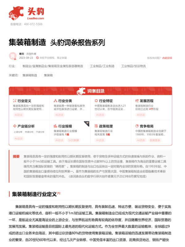 【头豹研究院】【20240104】集装箱制造 头豹词条报告系列-20页 行业研究