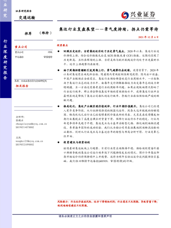 【兴业证券】【20211206】集运行业复盘展望:景气度持续,拐点仍需等待-24页 行业研究