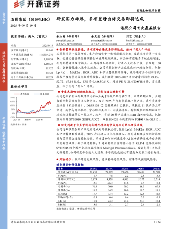 【开源证券】【202509】研发实力雄厚,多项重磅出海交易即将达成——港股公司首次覆盖报告-34页 公司研究