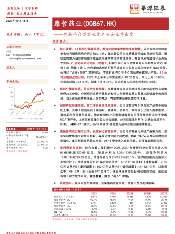 【华源证券】【202510】康哲药业(00867.HK)——创新平台型商业化龙头企业再出发-26页 证券期货研究报告