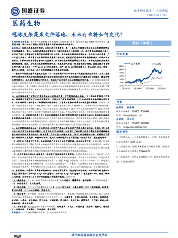 【国信证券】【20201019】医药政策快评:冠脉支架集采文件出台,不确定性即将出清-9页 行业研究