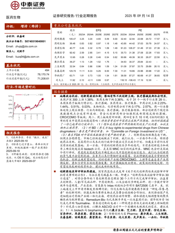【中泰证券】【202509】医药生物行业:地缘扰动不改创新主线,集采规则持续优化-12页 证券期货研究报告