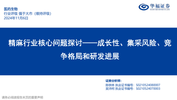 【华福证券】【20241106】精麻行业核心问题探讨:成长性、集采风险、竞争格局和研发进展-27页 行业研究