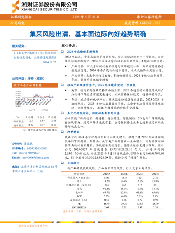 【湘财证券】【20250521】威高骨科(688161)集采风险出清,基本面边际向好趋势明确-27页 公司研究