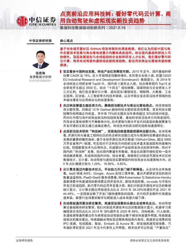 【中信证券】【20210816】点亮前沿应用科技树:看好零代码云计算、商用自动驾驶和虚拟现实新投资趋势-25页 行业研究