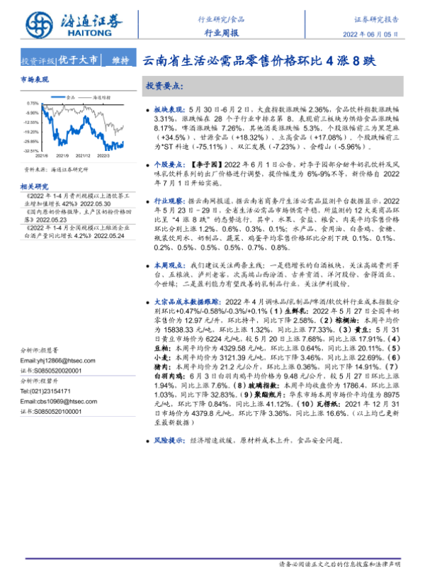 【海通证券】【20220605】20220605-海通证券-食品行业周报:云南省生活必需品零售价格环比4涨8跌-10页 行业研究