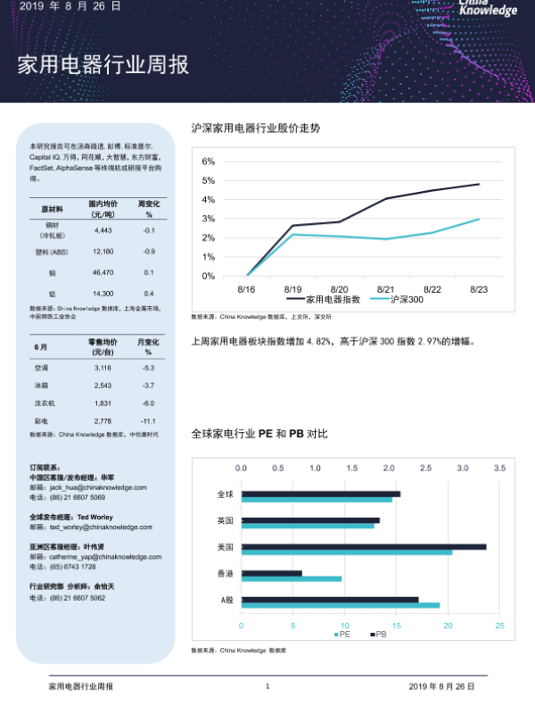 【China Knowledge】【20190826】家用电器行业周报-14页 行业研究