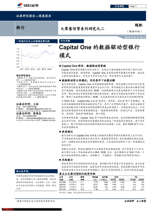 【国信证券】【20190718】银行深度报告:大零售信贷系列研究之二-Capital One的数据驱动型银行模式-24页 行业研究