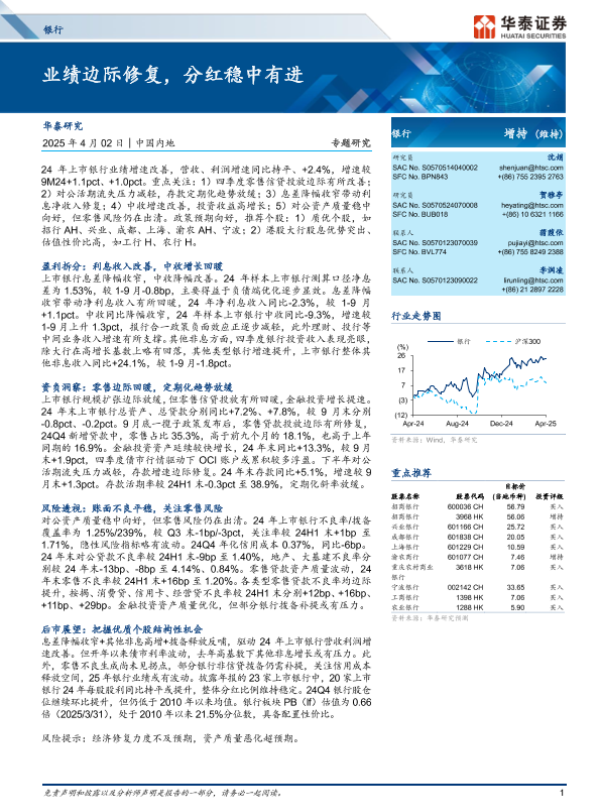 【华泰证券】【20250402】银行业专题研究:业绩边际修复,分红稳中有进-35页 行业研究