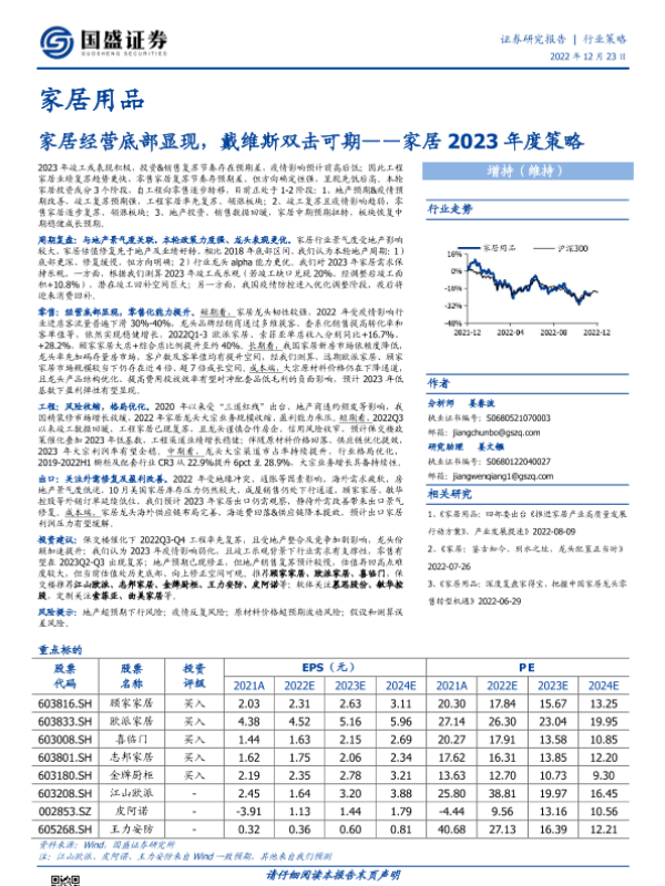【国盛证券】【20221223】家居行业2023年度策略:家居经营底部显现,戴维斯双击可期-23页 行业研究