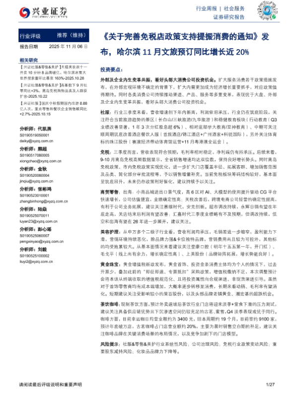 【兴业证券】【202511】行业周报|社会服务-27页 证券期货研究报告