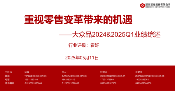 【浙商证券】【20250511】食品饮料行业大众品2024&2025Q1业绩综述:重视零售变革带来的机遇-27页 行业研究
