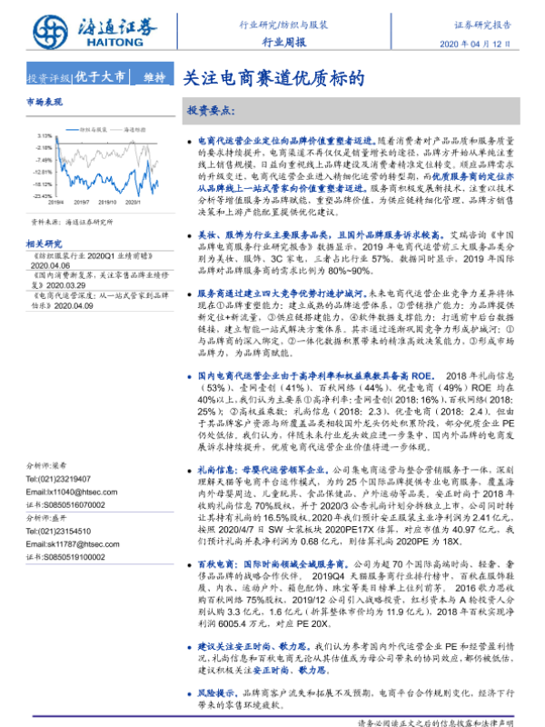 【海通证券】【20200412】20200412-海通证券-纺织与服装行业周报:关注电商赛道优质标的-7页 行业研究