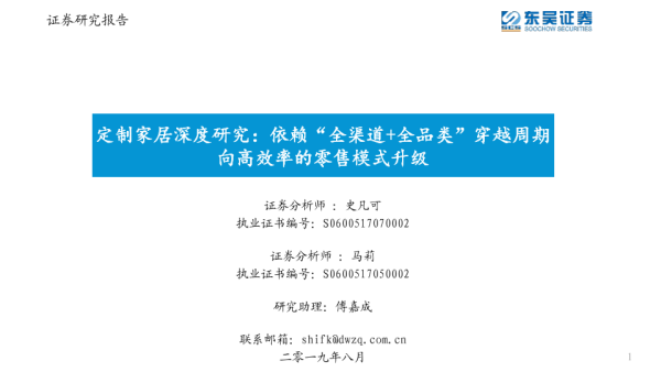 【东吴证券】【20190819】定制家居深度研究:依赖”全渠道+全品类“穿越周期,向高效率的零售模式升级-60页 行业研究