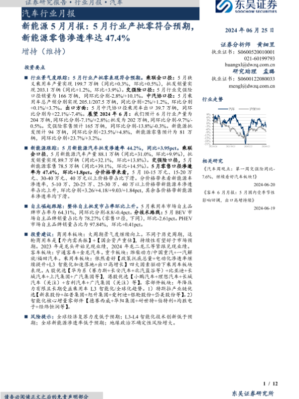 【东吴证券】【20240625】新能源5月月报:5月行业产批零符合预期,新能源零售渗透率达47.4%-12页 行业研究