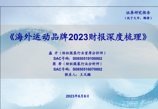 【海通证券】【20230606】纺织服装行业:海外运动品牌2023财报深度梳理-22页 行业研究