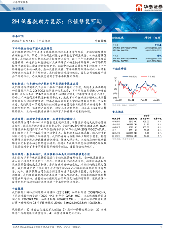 【华泰证券】【20230614】20230614-华泰证券-纺织服装中期策略:2H低基数助力复苏;估值修复可期-32页 行业研究