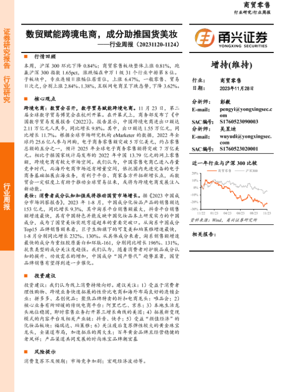 【甬兴证券】【20231128】商贸零售行业周报:数贸赋能跨境电商,成分助推国货美妆-12页 行业研究