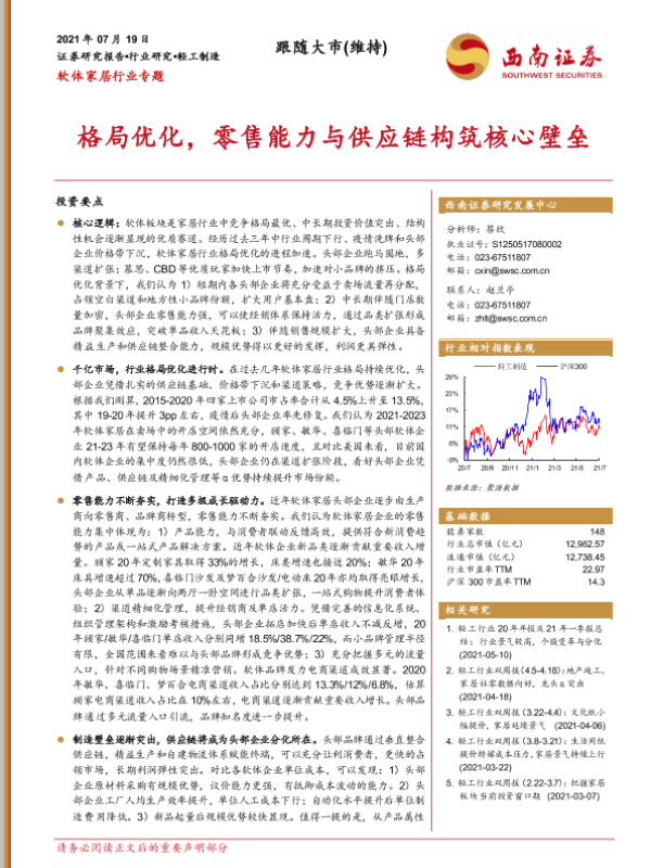 【西南证券】【20210719】软体家居行业专题:格局优化,零售能力与供应链构筑核心壁垒-30页 行业研究